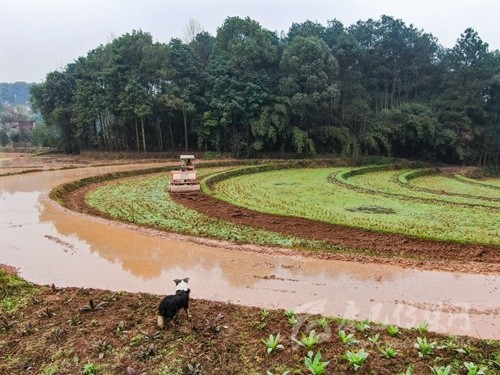 2月24日,瀘州市合江縣白米鎮(zhèn)橋上村,專業(yè)合作社的機(jī)耕手在用旋耕機(jī)耕地。 記者 郝飛 攝