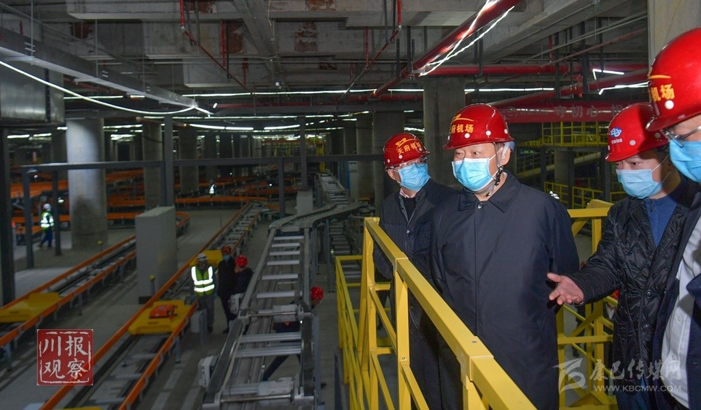 2月27日,彭清華書記到成都天府國際機(jī)場T1航站樓行李系統(tǒng)施工區(qū)域調(diào)研。