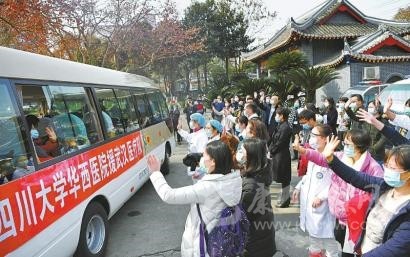 第九批 第十批醫(yī)療隊(duì)川大華西醫(yī)院的醫(yī)生出發(fā)現(xiàn)場。2月21日下午,四川省第九批第十批援助湖北醫(yī)療隊(duì)在成都完成集結(jié),一同啟程出征。四川在線記者何海洋攝