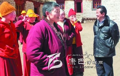 在雅江縣委、縣人大常委會(huì)主要領(lǐng)導(dǎo)及統(tǒng)戰(zhàn)、宗教部門(mén)的陪同下,李康來(lái)到距縣城90多公里的雅江縣紅龍鄉(xiāng)158k覺(jué)姆寺,同寺管會(huì)成員和部分僧尼進(jìn)行座談。他詳細(xì)了解寺廟的基本情況,仔細(xì)詢(xún)問(wèn)僧尼的生產(chǎn)生活和寺廟佛事活動(dòng)開(kāi)展情況,認(rèn)真傾聽(tīng)僧尼的反映和訴求,對(duì)僧尼提出的困難和問(wèn)題詳細(xì)記錄,認(rèn)真答復(fù),耐心細(xì)致地講解宣傳黨的民族宗教和惠寺惠僧政策。座談會(huì)上,李康主任簡(jiǎn)短的開(kāi)場(chǎng)白很快拉近了大家的距離,他說(shuō),這次專(zhuān)門(mén)到寺廟的目的就是看望大家,建立聯(lián)系,了解情況,收集問(wèn)題,希望大家暢所欲言,互相溝通,加強(qiáng)交流,增進(jìn)了解,共同推進(jìn)寺廟的健康有序發(fā)展。當(dāng)他了解到該寺的水、電問(wèn)題在縣委、政府的關(guān)心重視下,今年即將得到解決時(shí),他說(shuō),州、縣黨委、政府歷來(lái)十分關(guān)心寺廟的基礎(chǔ)設(shè)施建設(shè)和廣大僧尼的生產(chǎn)生活、健康醫(yī)療等問(wèn)題,寺廟的水電、道路、通信等基礎(chǔ)設(shè)施始終得到了黨委、政府的關(guān)心支持,僧尼的醫(yī)保、養(yǎng)老和最低生活保障等生活保障措施正在全州寺廟全面覆蓋。對(duì)寺廟的其他困難和問(wèn)題,州、縣將積極協(xié)調(diào),盡快解決。他強(qiáng)調(diào)指出,158k覺(jué)姆寺近年來(lái)通過(guò)縣委、政府綜合施策,強(qiáng)化教育,規(guī)范管理,寺廟整體情況良好,步入了依法管理的良性軌道。他講到,我們黨的民族宗教政策是長(zhǎng)期的、一貫的,寺廟作為基本社會(huì)單元,僧尼作為普通公民和基本群眾,要自覺(jué)接受當(dāng)?shù)攸h委、政府依法管理,維護(hù)祖國(guó)統(tǒng)一、民族團(tuán)結(jié)和法制尊嚴(yán),推動(dòng)宗教與社會(huì)主義社會(huì)相適應(yīng),與現(xiàn)代文明進(jìn)程相協(xié)調(diào),積極投入全州發(fā)展中來(lái),共同建設(shè)好我們的和諧幸福家園。任何寺廟只要服從當(dāng)?shù)攸h委、政府的管理,認(rèn)真貫徹落實(shí)好藏傳佛教的各項(xiàng)管理規(guī)定,真正發(fā)揮好宗教的正面積極作用,寺廟才會(huì)得到黨委、政府更多的關(guān)心支持,才會(huì)得到更好的健康發(fā)展。他希望158k覺(jué)姆寺要依法加強(qiáng)宗教事務(wù)的管理,深入貫徹落實(shí)《甘孜州藏傳佛教事務(wù)條例實(shí)施細(xì)則》,促進(jìn)依法治寺、規(guī)范管寺,為維護(hù)正常宗教秩序、服務(wù)經(jīng)濟(jì)社會(huì)發(fā)展、促進(jìn)社會(huì)和諧穩(wěn)定做出積極貢獻(xiàn)。