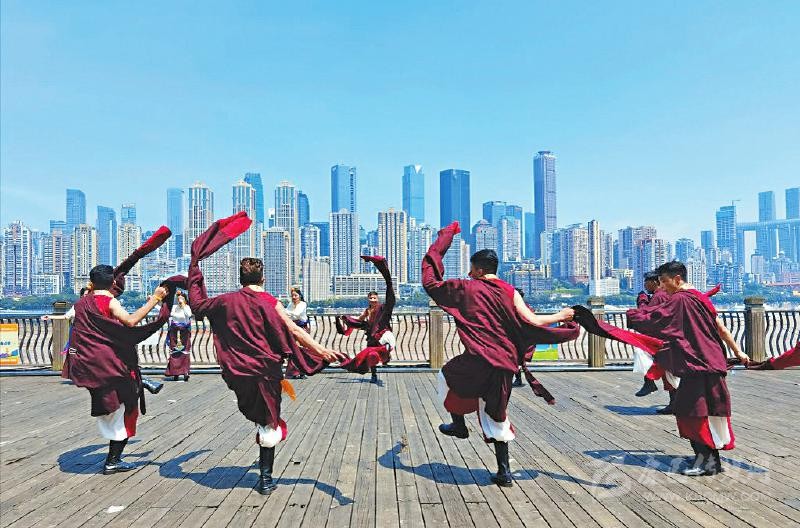 7月中旬,德格縣格薩爾藝術(shù)團(tuán)赴重慶開(kāi)展甘孜州建州70周年旅游線路推介暨“絲路甘孜康藏秘境”品牌發(fā)布會(huì),在重慶市區(qū)進(jìn)行文藝演出。 (德格縣文化廣播電視和旅游局供圖)