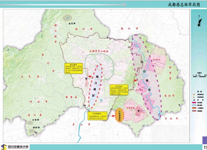 成都港將以旅游客運為主,適度發(fā)展貨物運輸,劃分為錦江港區(qū)、沱江港區(qū)、三岔湖港區(qū),形成“兩江一湖”港區(qū)為主,其它港點為補充的總體格局。