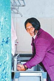 通過(guò)參加學(xué)習(xí)班,不少村民養(yǎng)成了好習(xí)慣。圖為9月13日,卡娘村一位村民正在洗手。 四川在線記者楊樹(shù)攝