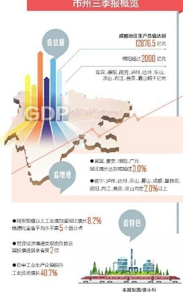 從增速看,宜賓、雅安、綿陽、廣元4市增速“破3”,宜賓達(dá)到3.3%;上半年一度負(fù)增長的4個市州也全面扭轉(zhuǎn)下滑勢頭,前三季度增速全部轉(zhuǎn)正。
