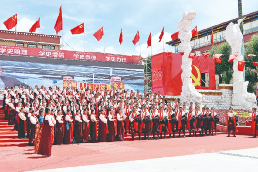 中國共產(chǎn)黨成立以來的一百年,是中國人民根本改變歷史命運的一百年,是中華民族走向偉大復(fù)興的一百年,是中國為全人類發(fā)展作出卓越貢獻的一百年。中國共產(chǎn)黨團結(jié)帶領(lǐng)中國人民走過的光輝歷程,是用鮮血、汗水、淚水寫就的,充滿著苦難和輝煌、曲折和勝利、付出和收獲,是中華民族發(fā)展史上的壯麗篇章。中國共產(chǎn)黨領(lǐng)導(dǎo)中國人民取得的偉大勝利,讓中華文明在現(xiàn)代化進程中煥發(fā)出新的蓬勃生機,讓科學(xué)社會主義在21世紀(jì)煥發(fā)出新的蓬勃生機,讓中華民族煥發(fā)出新的蓬勃生機,是中國人民和中華民族繼往開來、奮勇前進的現(xiàn)實基礎(chǔ)。