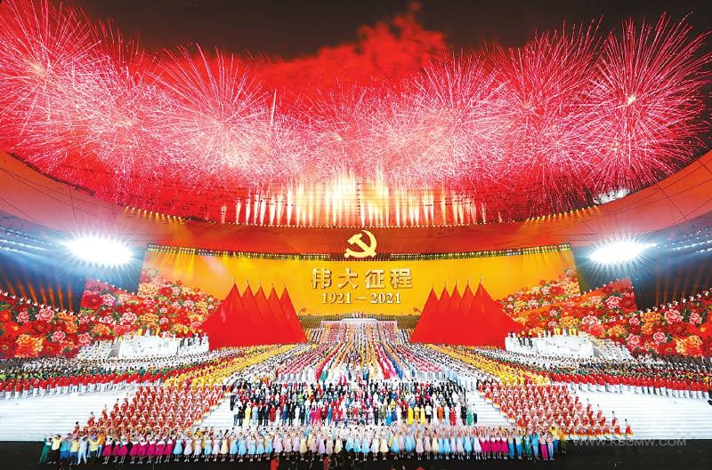 6月28日晚,北京,國家體育場燈光璀璨、人聲鼎沸。習近平等黨和國家領導人同約2萬名觀眾一起觀看文藝演出《偉大征程》,共同慶祝中國共產黨成立100周年。