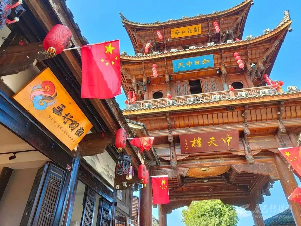 在南充古城閬中,以中天樓為核心鋪開的四條街道,全部被五星紅旗裝點(diǎn)開來,甚至部分街段上空鋪上了“紅旗海”。新城的主干道,也掛上了一面面五星紅旗,站在街頭放眼望去,鮮艷的五星紅旗成為一道最靚麗的風(fēng)景線。