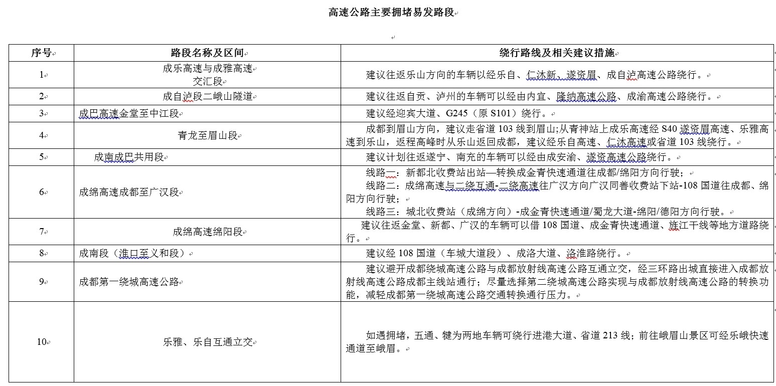 據(jù)氣象部門(mén)信息,元旦期間以多云或晴天為主,基本無(wú)惡劣天氣,適宜外出。結(jié)合我省疫情防控情況和小長(zhǎng)假出行特點(diǎn),預(yù)計(jì)元旦假期,群眾出行以省內(nèi)探親、短途出游為主,多集中在成都及其周邊地區(qū),部分通往冬季熱門(mén)景區(qū)的路段流量將較大增長(zhǎng)。