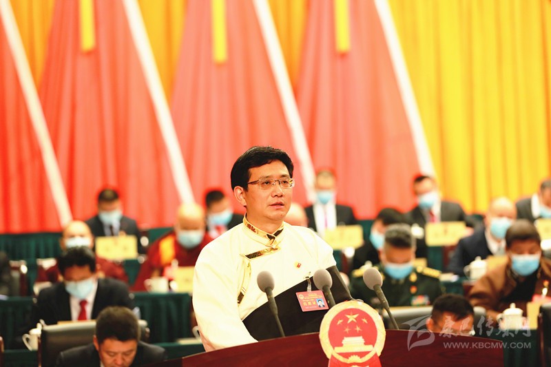 州人民政府代理州長馮發(fā)貴代表十二屆州人民政府向大會作政府工作報告,報告共分三個部分:過去五年工作回顧,今后五年主要目標任務,2022年工作安排建議。
