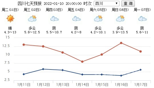 預(yù)計12日開始,盆地會有一次降水天氣過程,日平均氣溫也會隨之累計下降2~4℃。