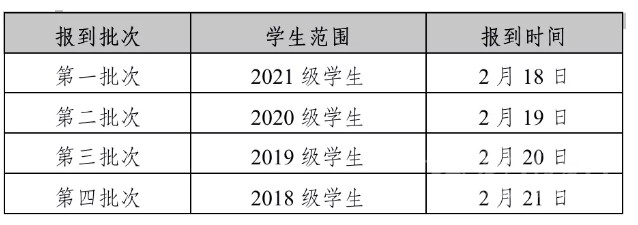 根據(jù)上級教育主管部門和學(xué)校屬地疫情防控部門要求,學(xué)校按照“錯(cuò)區(qū)域、錯(cuò)層次、錯(cuò)時(shí)、錯(cuò)峰”的原則,組織學(xué)生安全、有序返校。符合返校條件的學(xué)生嚴(yán)格按以下時(shí)間返校報(bào)到,不得提前返校。
