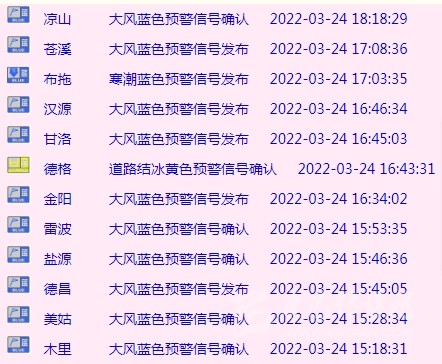 24小時內(nèi),四川多地大風藍色預(yù)警信號生效中↘