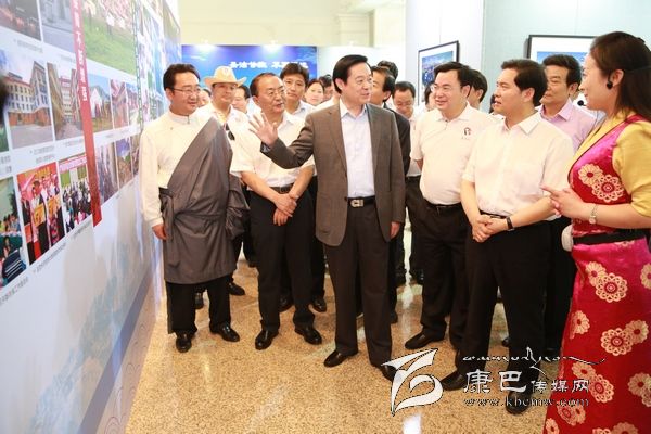 6月8日上午10時(shí),劉奇葆、王正偉來到民族文化宮,首先走進(jìn)四川甘孜藏區(qū)發(fā)展成就暨旅游圖片展現(xiàn)場。這里,展示的是甘孜藏區(qū)經(jīng)濟(jì)社會(huì)發(fā)展成就、自然風(fēng)光、歷史文化、民族風(fēng)情、田園藏寨等方面內(nèi)容的圖片。一幅幅圖片,一個(gè)個(gè)場景,劉奇葆都非常熟悉。在四川工作期間,他曾十幾次奔赴甘孜藏區(qū)考察,足跡遍布全州18個(gè)縣。劉奇葆仔細(xì)觀看展示圖片,并不時(shí)詢問交通通信、優(yōu)勢(shì)產(chǎn)業(yè)等發(fā)展情況以及民生改善的情況。劉奇葆說,甘孜山川秀美,民族風(fēng)情濃郁,是一方充滿生機(jī)和活力的土地,希望甘孜立足自身實(shí)際,大力發(fā)展農(nóng)牧業(yè)和文化旅游業(yè),大力加強(qiáng)生態(tài)建設(shè)和環(huán)境保護(hù),大力改善民生,努力走出藏區(qū)科學(xué)發(fā)展、跨越發(fā)展之路。