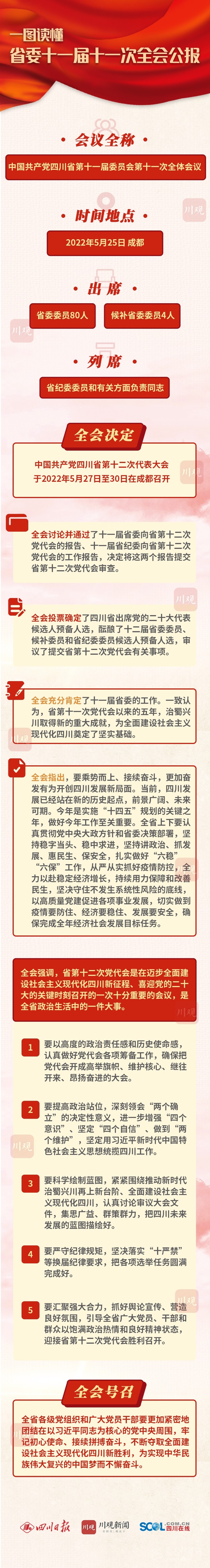 全會決定,中國共產黨四川省第十二次代表大會于2022年5月27日至30日在成都召開。