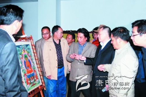 本網訊(高志安 鄭勇 文/圖) 6月21日,國家文化部非遺司司長馬文輝在省文化廳副廳長澤波陪同下,到四川省藏文學校調研藏族唐卡畫繪藝術嘎瑪嘎孜畫派教學情況。嘎瑪嘎孜畫派國家級傳承人、省藏校高級講師顔登澤仁就嘎瑪嘎孜畫派的歷史、傳承情況以及現狀向馬文輝一行作了匯報。省藏校負責人匯報了學校唐卡藝術教學情況。馬文輝一行一邊聽取匯報,一邊觀看師生作品和學生現場作畫,并向師生了解情況,聽完匯報、看完學生繪畫后,馬文輝對省藏校的唐卡藝術教育工作給予了高度評價,并要求學校繼續(xù)做好弘揚民族優(yōu)秀傳統文化工作,為社會主義文化大發(fā)展作出新貢獻。