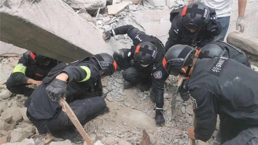 14時(shí)20分,翻山越嶺奔襲的240名甘孜特警抵達(dá)磨西鎮(zhèn)?!熬驮谶@兒!”“就在這兒!”15時(shí)左右,幾名特警來(lái)到海螺溝一處大型搜救設(shè)備無(wú)法進(jìn)入的區(qū)域,為避免鐵鍬傷人,硬是徒手刨土,從斷壁殘?jiān)g救出一名被困群眾,緊急送往醫(yī)院搶救。