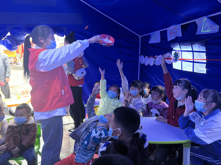 地震發(fā)生后,我州新時代文明實踐中心萬名志愿者第一時間深入一線,投入救災,開展搭建帳篷、應急備勤、秩序維護、人員信息登記、物品發(fā)放等工作。同時,首個“青青兒童樂園”在磨西鎮(zhèn)中心的貢嘎廣場臨時安置點落地,為災區(qū)兒童持續(xù)開展學習輔導、健康衛(wèi)生、游戲活動、心靈陪伴、防災減災等五大領域的志愿服務。