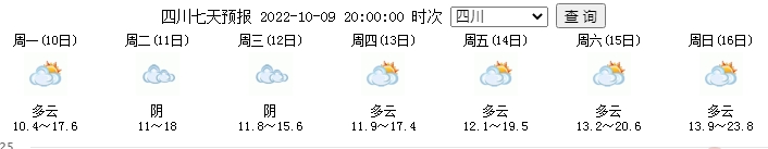中央氣象臺預(yù)計,10月10日20時至11日20時,四川西部和南部有小到中雨;10月11日20時至12日20時,四川大部有小到中雨。