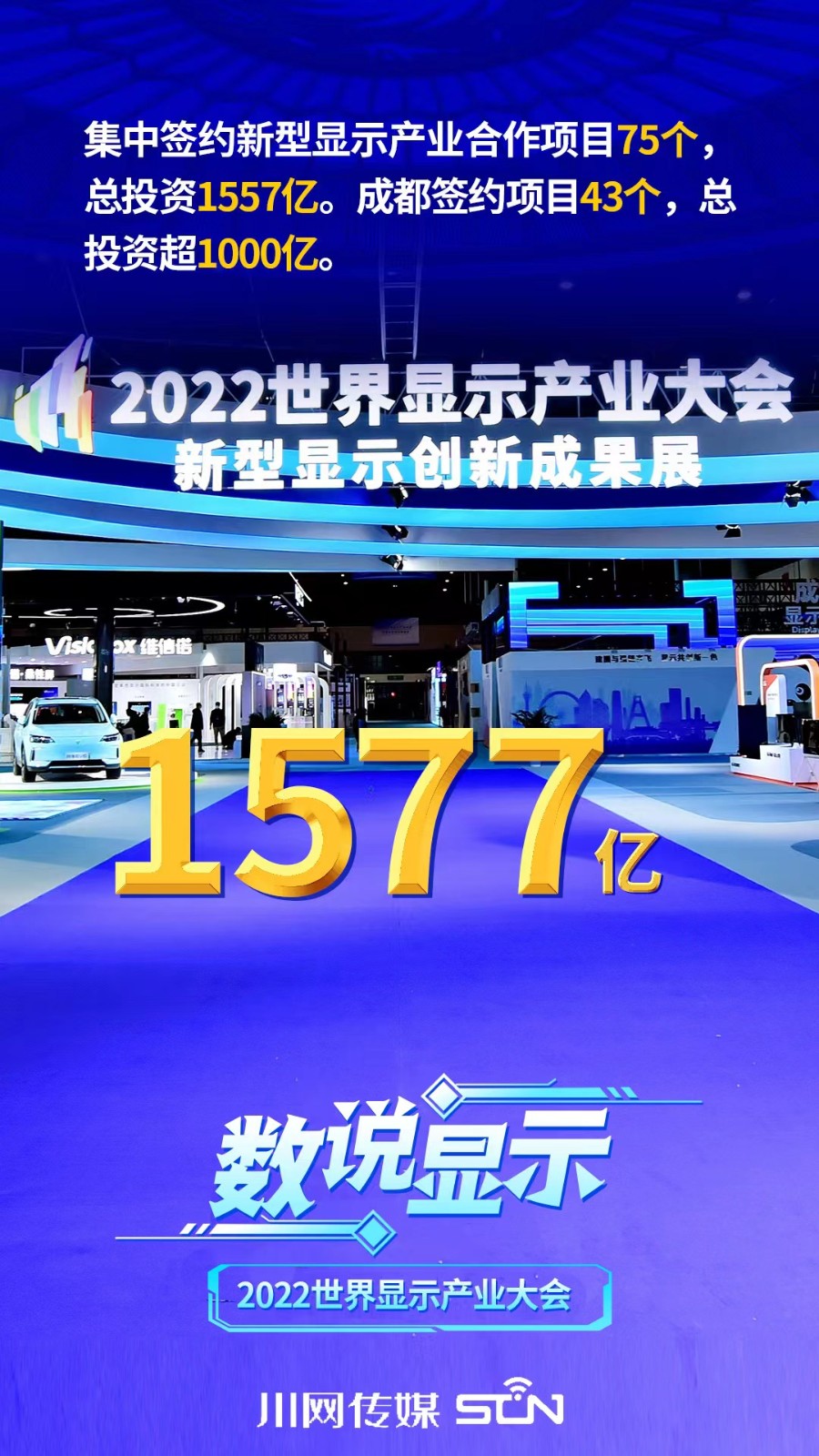 11月30日到12月1日,2022世界顯示產(chǎn)業(yè)大會(huì)在成都舉行。本屆大會(huì)有哪些成果?一組數(shù)字海報(bào)告訴你!