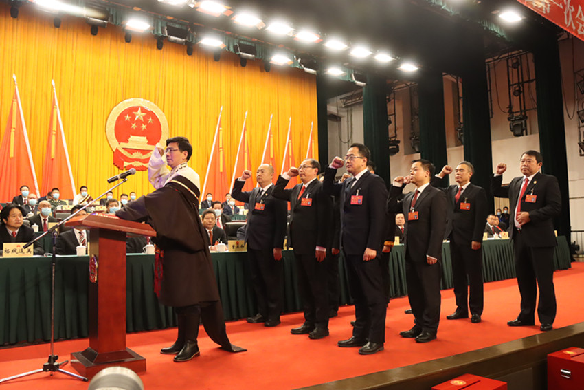 當選的州十三屆人大常委會組成人員向憲法宣誓。