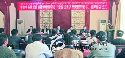本網(wǎng)訊(記者 周華 陳楊 文/圖)7月17日,中央組織部追授畢世祥同志“全國(guó)優(yōu)秀共產(chǎn)黨員”證書(shū)、獎(jiǎng)牌頒發(fā)儀式在康定舉行。受省委委托,正在我州出席指導(dǎo)州委黨的群眾路線教育實(shí)踐活動(dòng)專題民主生活會(huì)的省委常委、政法委書(shū)記劉玉順代向畢世祥同志的妻子許惠明頒發(fā)了證書(shū)和獎(jiǎng)牌。
