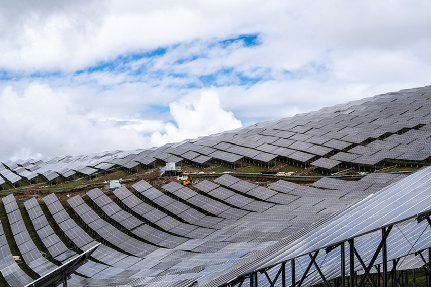 距兩河口水電站約50公里的柯拉一期光伏電站,200多萬塊光伏板將最高海拔4600米的扎拉托桑山裝點(diǎn)成一片“光伏海”。