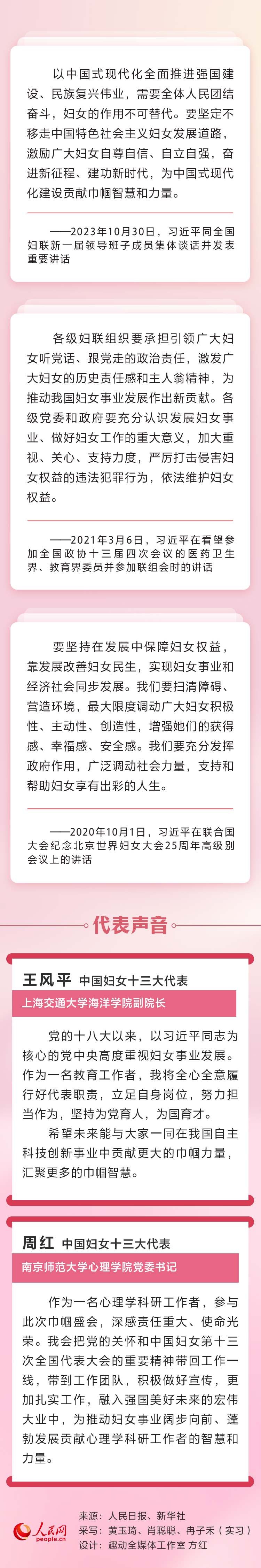 黨的十八大以來,以習(xí)近平同志為核心的黨中央從黨和國家事業(yè)發(fā)展全局出發(fā),高度重視和積極推進(jìn)婦女工作,加強(qiáng)黨對婦女工作的領(lǐng)導(dǎo),堅持中國特色社會主義婦女發(fā)展道路,部署婦聯(lián)改革任務(wù),發(fā)揮婦女在各個方面的積極作用,推動我國婦女事業(yè)取得歷史性成就。人民網(wǎng)帶您重溫習(xí)近平總書記重要論述并邀請中國婦女十三大代表解讀。
