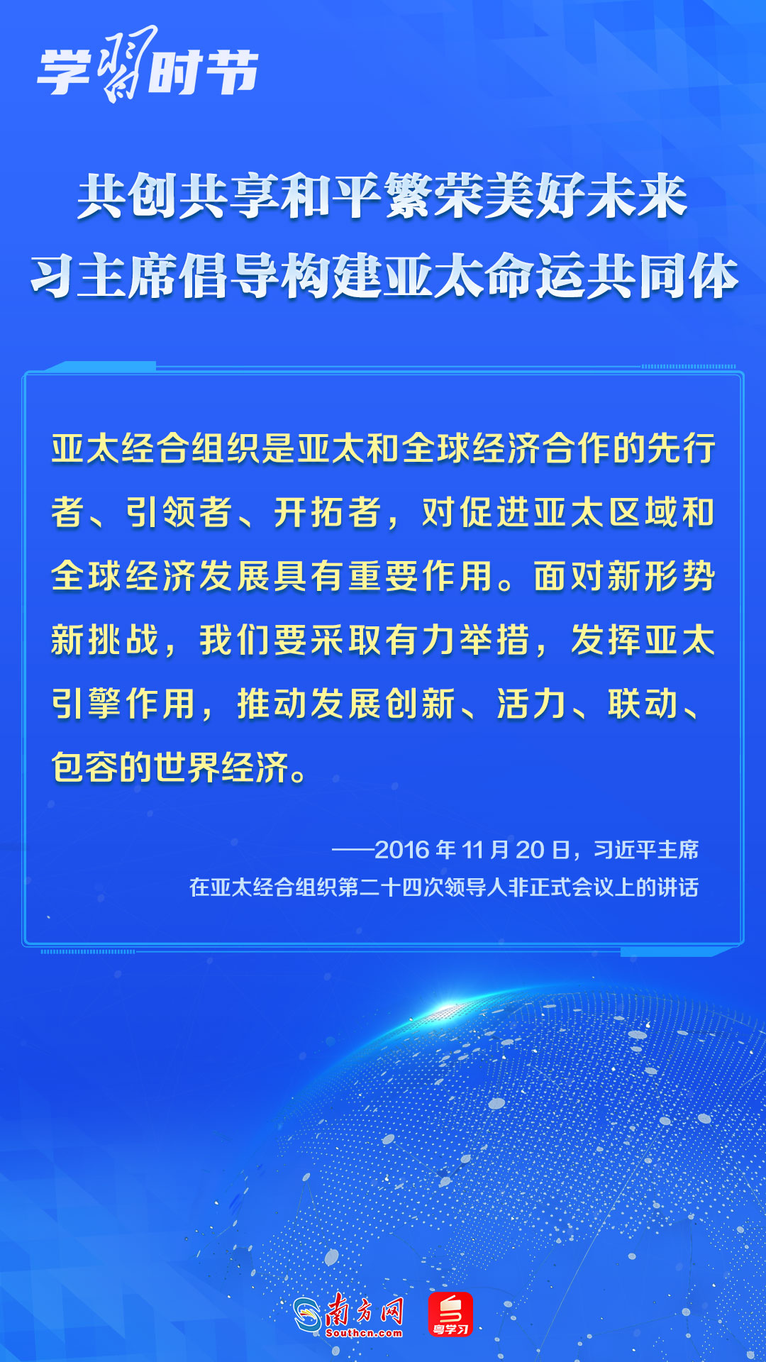 中國一直是APEC的積極參與者、貢獻者,為推動建設(shè)亞太大家庭發(fā)揮了重要作用。習(xí)近平主席多次出席APEC會議,以中國主張促進亞太合作,以中國貢獻推動亞太發(fā)展,以中國智慧凝聚亞太共識,多次闡述構(gòu)建開放包容、創(chuàng)新增長、互聯(lián)互通、合作共贏的亞太命運共同體的理念主張和重大意義,讓我們一同學(xué)習(xí)。