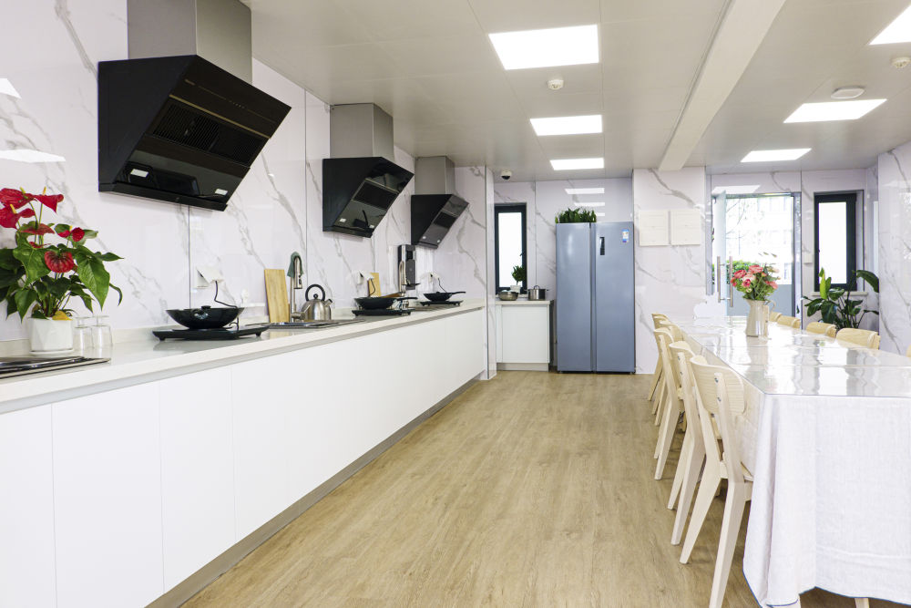 閔行區(qū)新時代城市建設(shè)者管理者之家的共享廚房和共享洗衣房。