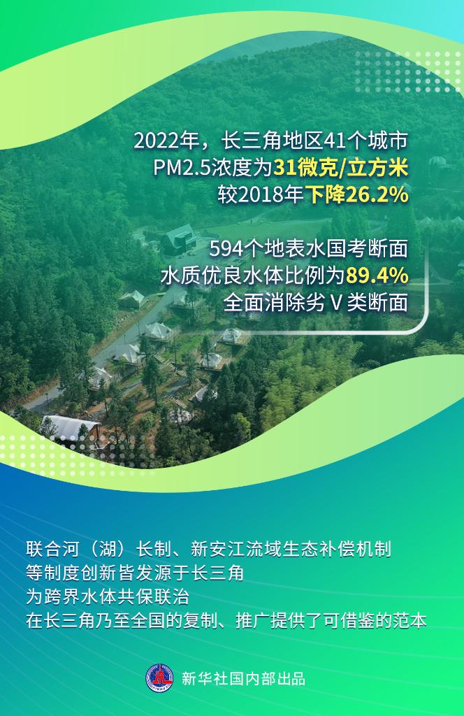 2022年,長(zhǎng)三角地區(qū)41個(gè)城市PM2.5濃度為31微克/立方米,較2018年下降26.2%。594個(gè)地表水國(guó)考斷面水質(zhì)優(yōu)良水體比例為89.4%,全面消除劣Ⅴ類(lèi)斷面。
