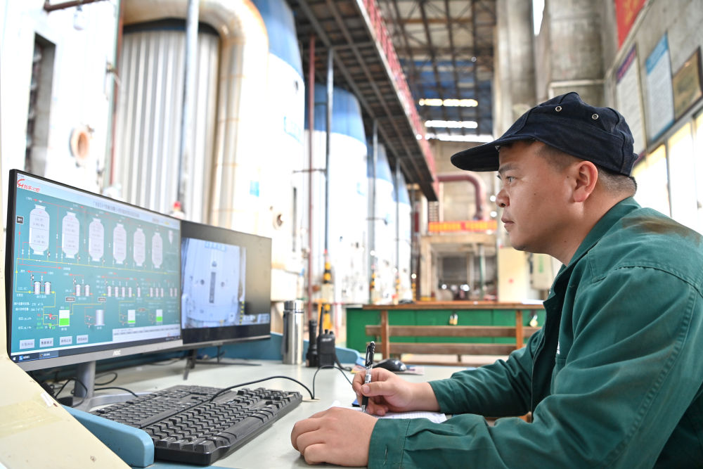 12月12日,工作人員在廣西來(lái)賓小平陽(yáng)湘桂制糖有限公司監(jiān)控蒸發(fā)系統(tǒng)。