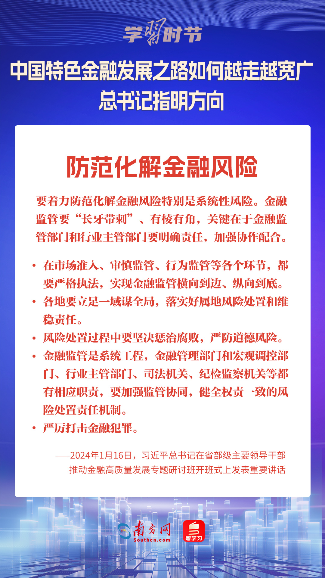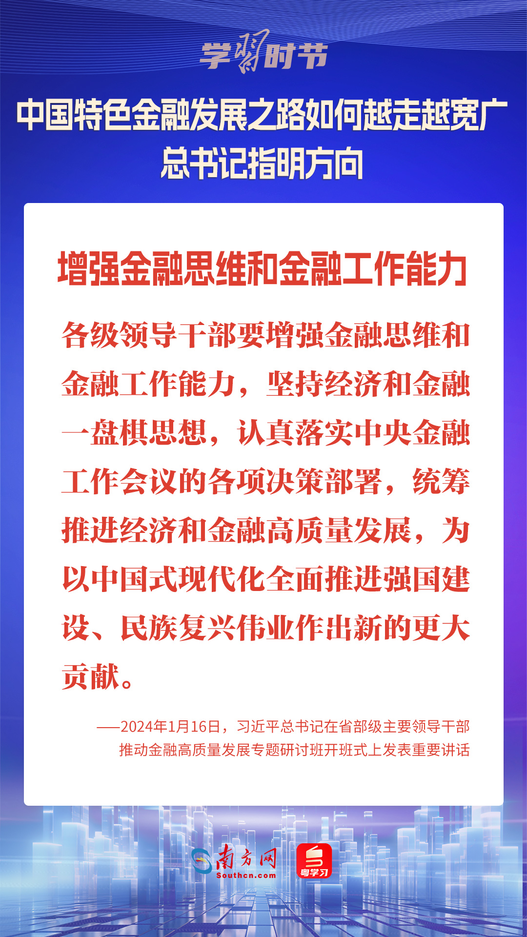 1月16日,中共中央總書記、國家主席、中央軍委主席習(xí)近平在省部級主要領(lǐng)導(dǎo)干部推動金融高質(zhì)量發(fā)展專題研討班開班式上發(fā)表重要講話,為中國特色金融發(fā)展之路指明方向。