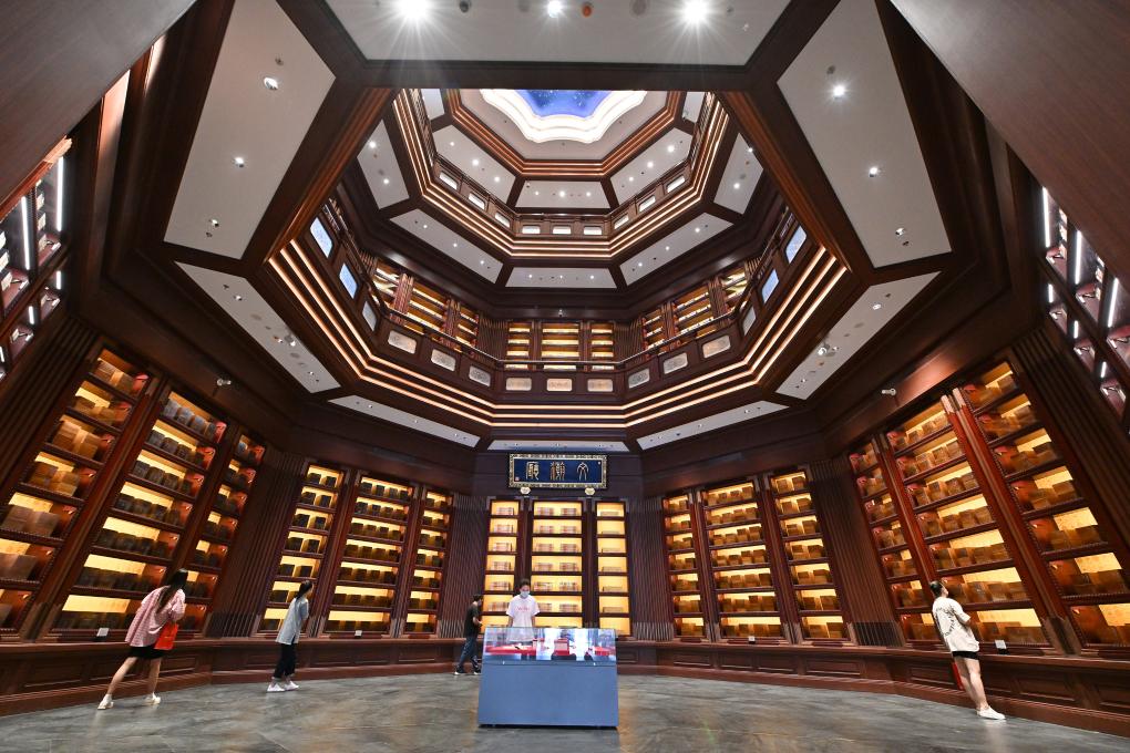 ?? 2022年7月30日,觀眾在中國(guó)國(guó)家版本館中央總館文瀚廳內(nèi)參觀。當(dāng)日,中國(guó)國(guó)家版本館開(kāi)館暨展覽開(kāi)幕式在中國(guó)國(guó)家版本館中央總館舉行。新華社記者 李鑫 攝