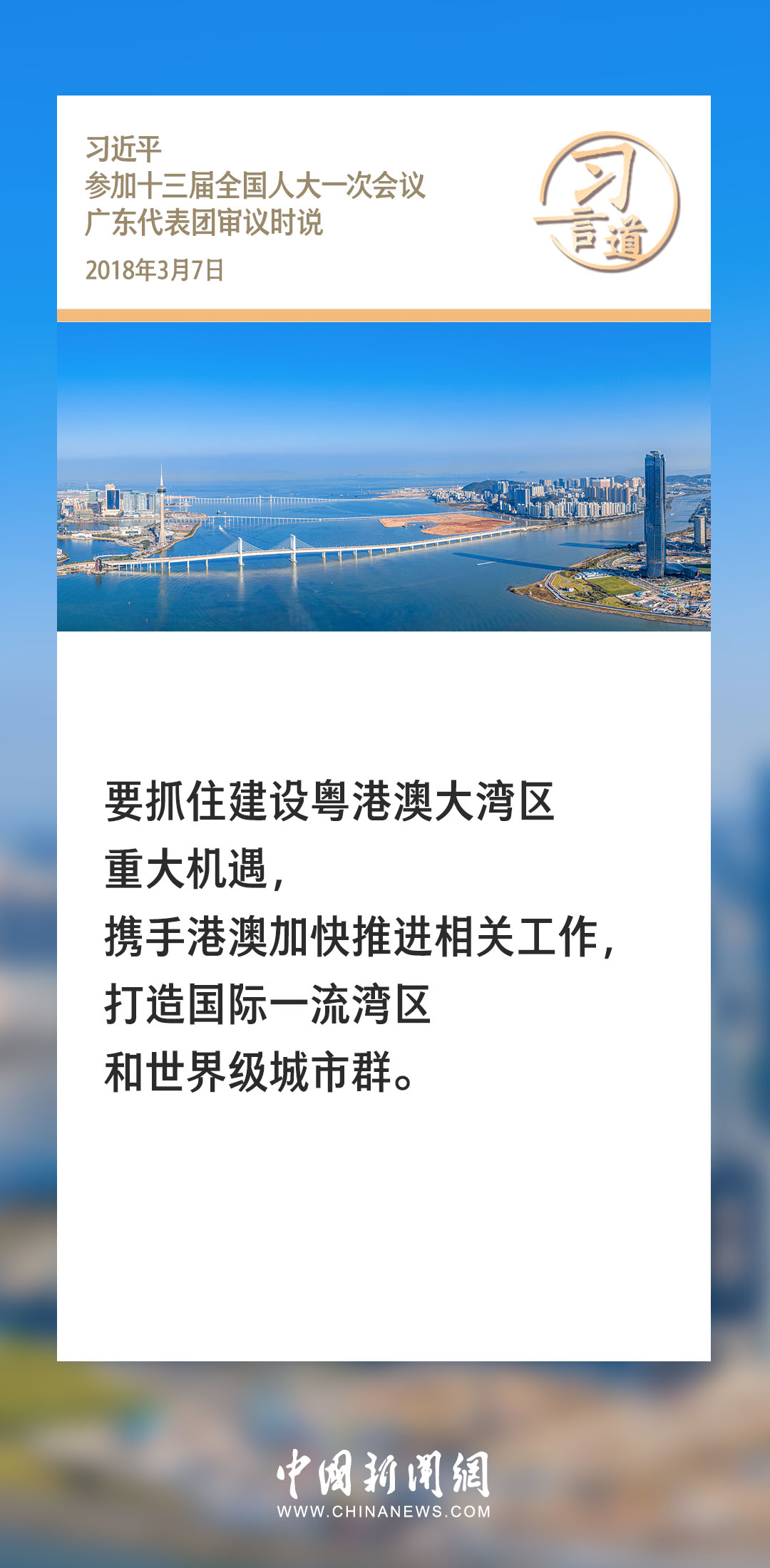 習近平總書記高度重視粵港澳大灣區(qū)建設,多次作出重要論述,從全局高度為粵港澳大灣區(qū)發(fā)展擘畫藍圖。