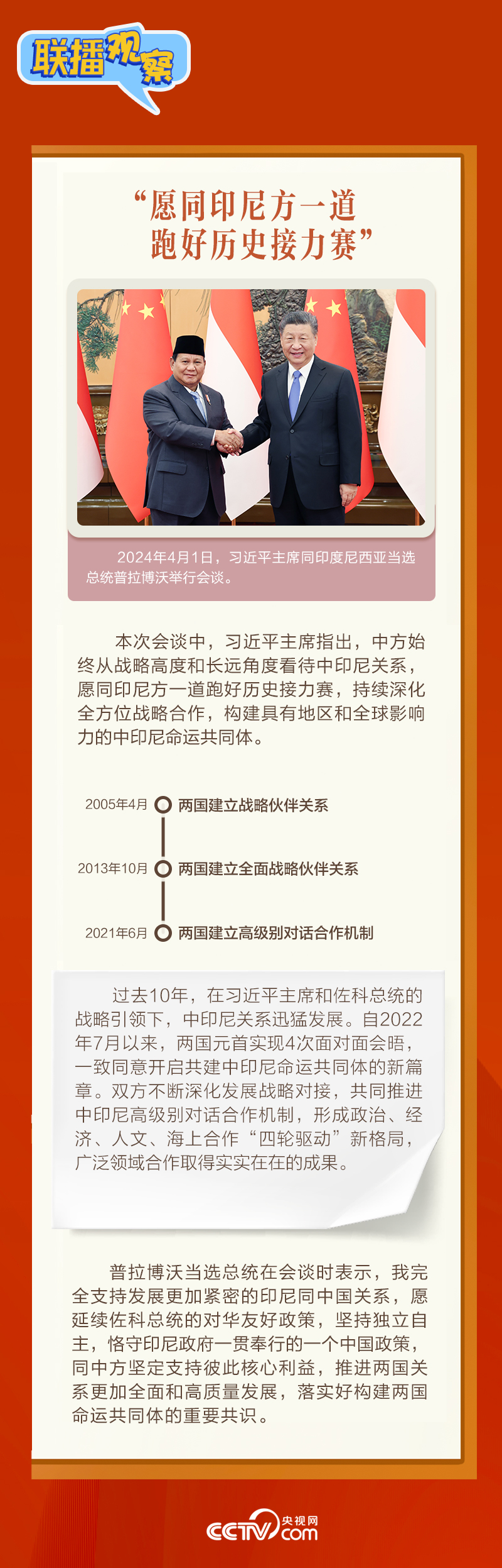 聯(lián)播+“你將中國作為當選后的首訪國家,在穆斯林齋月期間專程來華,體現(xiàn)了對中印尼關系的高度重視。”4月1日下午,習近平主席在北京人民大會堂同印度尼西亞當選總統(tǒng)普拉博沃舉行會談。
