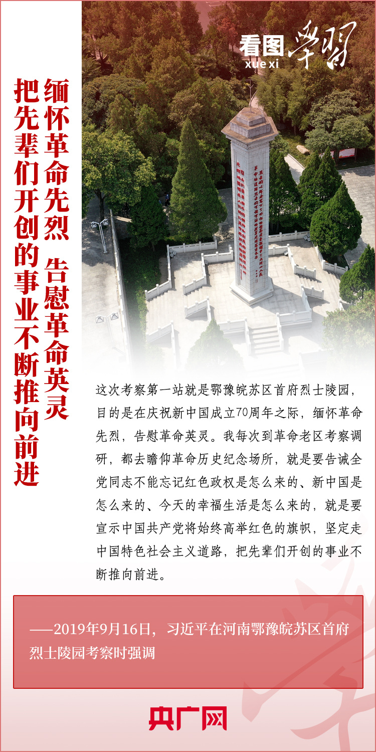 緬懷革命前輩,告慰先烈英靈。黨的十八大以來,習(xí)近平總書記多次在重大活動(dòng)、赴地方調(diào)研時(shí),或深情追憶革命前輩、英雄烈士,或向革命紀(jì)念場(chǎng)館禮敬鮮花、關(guān)心看望英烈親屬。總書記勉勵(lì)大家要繼承革命先烈遺志,把他們流血犧牲打下的紅色江山守護(hù)好、建設(shè)好,以實(shí)現(xiàn)中華民族偉大復(fù)興來告慰革命前輩和先烈。