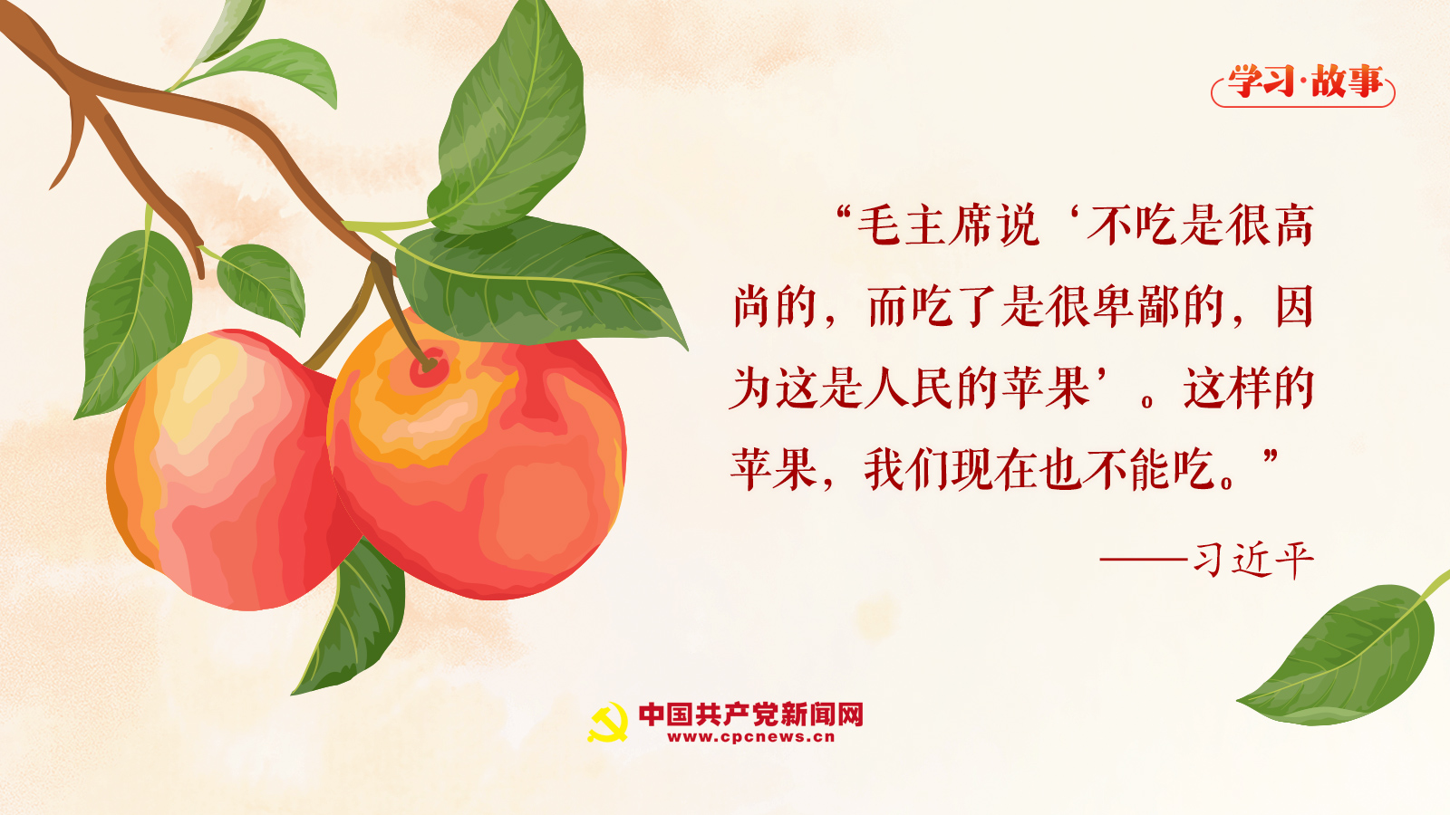 “毛主席說‘不吃是很高尚的,而吃了是很卑鄙的,因為這是人民的蘋果’。這樣的蘋果,我們現(xiàn)在也不能吃。”習(xí)近平總書記意味深長地說。