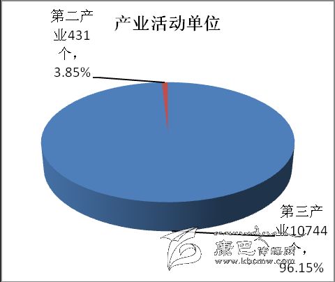 在有證照個體經營戶中,第二產業(yè)占3.01 %;第三產業(yè)占96.99 %。有證照個體經營戶從業(yè)人員中,第二產業(yè)占3.82 %,第三產業(yè)占96.18 %。