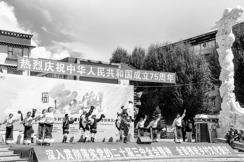 “沒想到平時(shí)在村里跳的鍋莊,今天受到了這么多人的歡迎和喜愛,給了我們很大的鼓舞,今后我們還要繼續(xù)跳好鍋莊,并一代代傳承下去?!蹦獕梧l(xiāng)下莫壩村的村民仁稱多吉高興地說?!斑@是我畫的家鄉(xiāng),名叫《呷洼中秋夜》?!边韧萼l(xiāng)日里新村的村民貢布介紹了自己的油畫作品,畫家出自鄉(xiāng)野,畫風(fēng)飽含鄉(xiāng)韻,引來一片嘖嘖稱奇。競演大賽上,22個(gè)鄉(xiāng)鎮(zhèn)立足自身實(shí)際,以各具特色的敘述,為觀眾全景描述了地方文化、特色物產(chǎn)、自然景觀、產(chǎn)業(yè)經(jīng)濟(jì)、新風(fēng)新貌等,今日理塘鄉(xiāng)村,處處好風(fēng)光。