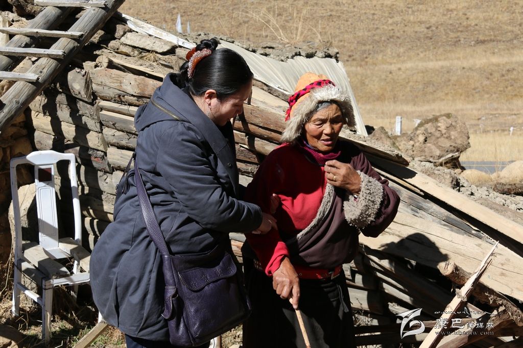 由于降措和妻子其米拉姆的腿腳不便,都患有風濕,李萍便扶著老人,在她的帶領(lǐng)下走進房屋查看房屋損毀情況,臨別時還不斷叮囑老人注意安全,暫時不要在房屋內(nèi)居住。