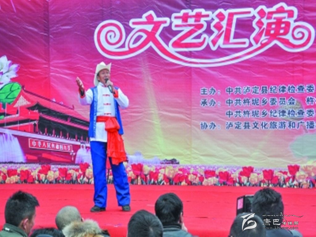 本網(wǎng)訊(姜濤 文/圖)12月22日,瀘定縣在杵坭鄉(xiāng)舉辦黨風(fēng)廉政建設(shè)宣傳教育文藝匯演,全縣各鄉(xiāng)鎮(zhèn)黨委主要負(fù)責(zé)人、杵坭鄉(xiāng)機(jī)關(guān)干部職工、各村財(cái)政供養(yǎng)人員、中心校學(xué)生、群眾400多人觀看了演出。 演出形式豐富多彩,表演者用曼妙的歌聲歌頌廉政建設(shè)給人民群眾帶來的實(shí)惠,唱出了杵坭鄉(xiāng)增強(qiáng)廉潔自律意識的火熱情懷;用舞蹈來展現(xiàn)廉政建設(shè)開出的和諧之花,營造出一種清正廉潔、求真務(wù)實(shí)的良好氛圍。每一個節(jié)目都緊緊圍繞著清正廉潔、秉公守法這一主題,演出精彩紛呈、高潮迭起,精彩的表演引來觀眾的連連喝彩和陣陣掌聲。杵坭鄉(xiāng)山歌王吳全清用山歌《黨員干部走基層》生動反映出中央八項(xiàng)規(guī)定出臺以來鄉(xiāng)鎮(zhèn)干部在改進(jìn)“四風(fēng)”方面取得的喜人變化,讓群眾真切地感受到“廉”就在身邊,弘揚(yáng)廉政文化建設(shè)所取得的輝煌成就。