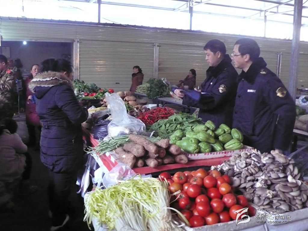 執(zhí)法人員檢查農(nóng)貿(mào)市場(chǎng)。
