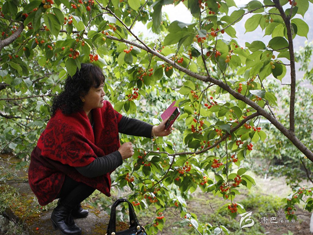 “來,嘗嘗我家的紅櫻桃。純綠色食品,營養(yǎng)豐富、甘甜可口。”正在自家櫻桃園里采摘櫻桃的一位村民熱情地招呼著記者。閑聊中得知,村民叫田忠華,今年55歲,是杵坭鄉(xiāng)杵坭村羊兒槽組的原住村民。田忠華告訴記者,他家現(xiàn)有4口人——自己、老伴及兒子、兒媳。說話間,田忠華指著正在旁邊一棵樹上采摘櫻桃的一名女子介紹說,那是他的兒媳拉姆,娘家在康定縣姑咱鎮(zhèn),與拉姆一同采摘櫻桃的兩個年齡相仿的漂亮姑娘,其中一個叫徐婷,是拉姆的堂妹,另一個則是拉姆的侄女。兩個姑娘都在瀘定中學(xué)讀高中,時值周末,便來幫助采摘櫻桃。面對記者的采訪,徐婷顯得甚是靦腆,當(dāng)覺察到記者在拍攝她時,漂亮的臉蛋上一下子就漾起了一層紅暈。不過,置身這果香四溢的櫻桃林之中,還真不知究竟是滿樹滿枝的櫻桃映紅了姑娘的臉,還是姑娘的臉映紅了滿樹滿枝的櫻桃。只是,不經(jīng)意間發(fā)現(xiàn),這林中的鳥兒活躍得更加歡樂了。