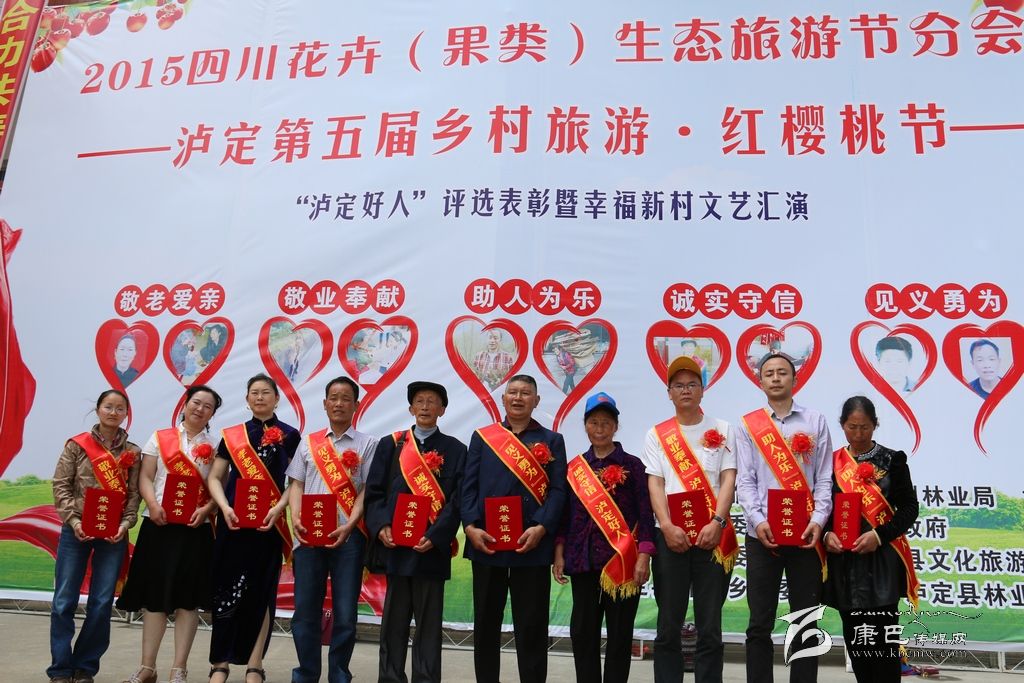 本網(wǎng)訊(記者 宋志勇文/圖)4月18日,由四川省生態(tài)旅游協(xié)會(huì)、州林業(yè)局、州旅游局主辦的2015四川花卉(果類)生態(tài)旅游暨瀘定縣第四屆鄉(xiāng)村旅游·紅櫻桃節(jié)——“瀘定好人”評(píng)選表彰暨幸福新村文藝匯演在瀘定縣杵坭鄉(xiāng)開(kāi)幕。活動(dòng)以“魅力櫻桃、果香名城”
