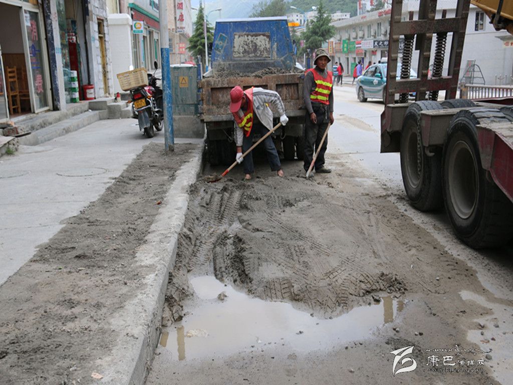 記者在現(xiàn)場看到,康定市政局正組織人員用鐵锨將淤泥鏟起,集中堆放在一起,排干水分后裝車運走;環(huán)衛(wèi)工人將路面上的垃圾、淤泥清理干凈,疏通下水設(shè)施,盡快排干路面積水。“我們今天早上六點不到就組織機關(guān)干部職工、城管執(zhí)法隊員10余名、環(huán)衛(wèi)工人30余名,出動1輛清洗車和3輛機動運輸車,重點清理積存淤泥較多的街道。”市政局局長譚易康介紹說。到下午六點,南郊街道的淤泥已清運完畢,路面已沖洗干凈,其他路段淤泥都已集中堆放,市容環(huán)境衛(wèi)生面貌恢復(fù)正常。