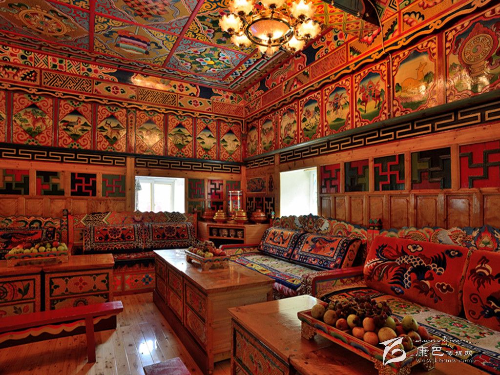 在功能布局上,打造別墅式風(fēng)格,對(duì)公共區(qū)域和每個(gè)院落進(jìn)行改造,擴(kuò)大綠化面積,強(qiáng)化視覺(jué)效果;在外觀設(shè)計(jì)上,根據(jù)藏族傳統(tǒng)的建筑風(fēng)格,提升風(fēng)貌改造,從外觀上體現(xiàn)原滋原味的本土特色;在色調(diào)搭配上,采用藏族偏愛(ài)的暖色調(diào)和古典色加以渲染,融合現(xiàn)代與民族特色;在室內(nèi)裝修上,使用精美的藏式地毯、銅器、陶制品等傳統(tǒng)藏式器皿裝飾,采用唐卡、藏族題材油畫(huà)等元素點(diǎn)綴,并適當(dāng)差異化裝修,以體現(xiàn)自然隨性舒適,讓游客透過(guò)每一個(gè)家庭感受到濃郁的藏寨風(fēng)情。
