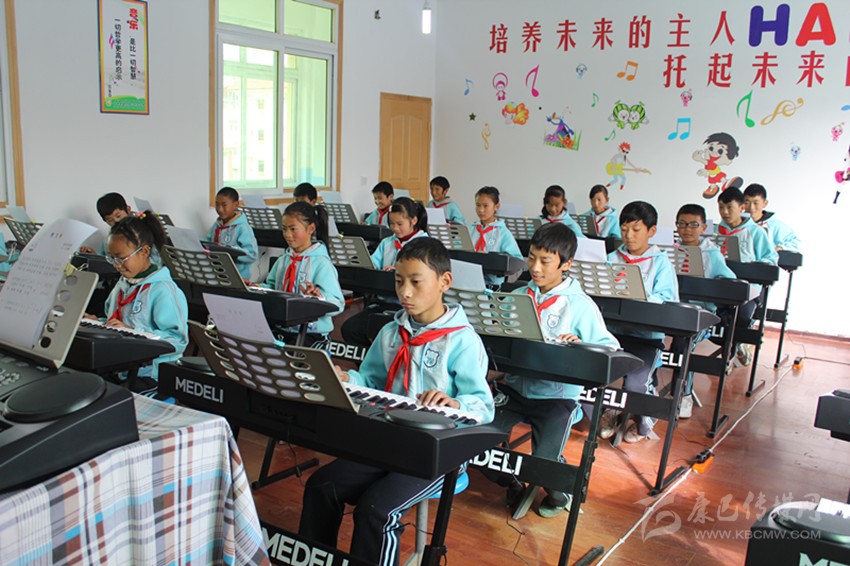 在甘孜縣城關(guān)第一完全小學(xué)的教室里,音樂(lè)教師正在教授孩子們識(shí)別五線譜,孩子們用稚嫩的雙手在電子琴鍵盤(pán)上彈奏著音樂(lè)的同時(shí),嘴里還不斷的唱著“哆唻咪發(fā)嗦”。放學(xué)時(shí),孩子們還沉浸在音樂(lè)的余韻中,興奮地給前來(lái)接送上課的父母?jìng)冎v述著課堂上的趣事。學(xué)生家長(zhǎng)翁登不勝唏噓:“大娃娃讀一完小的時(shí)候,只有語(yǔ)文數(shù)學(xué)和藏文可以學(xué),其他的課沒(méi)有專(zhuān)門(mén)的老師教,現(xiàn)在小女兒好安逸,還有專(zhuān)門(mén)的音樂(lè)老師教他們唱歌,現(xiàn)在的老師真的很厲害!”