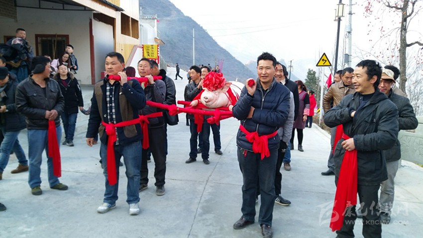 新年的第一縷陽光灑滿瀘定縣興隆鎮(zhèn)和平村,寂靜的山村在暖意融融的陽光中蘇醒過來,隨著春節(jié)的臨近,辛苦勞作了一年的村民,家家戶戶開始殺年豬迎新年。年豬文化已成為當?shù)貍鞒芯眠h的民俗文化。為適應全域旅游的需要,興隆鎮(zhèn)和平村已經(jīng)連續(xù)幾年舉辦年豬文化節(jié),鄉(xiāng)村旅游不斷升溫,村民告訴筆者,和平村殺年豬比過春節(jié)還熱鬧,而且殺年豬的過程非常講究,選日子、焚香、祈福一樣都不能少。新年第一天,和平村年豬文化節(jié)盛大開幕,年豬味兒,新年味兒十足。