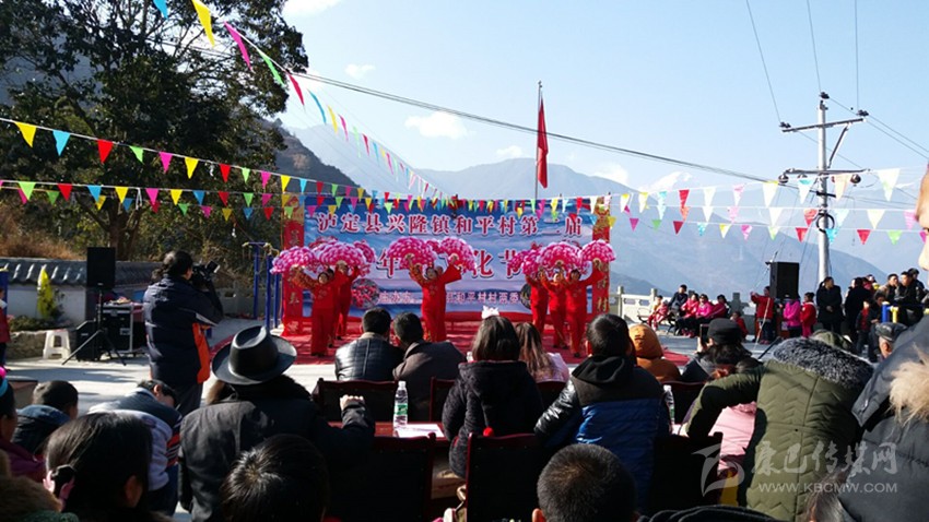 鼓聲喧天、歌聲飛揚,現(xiàn)場到處洋溢著濃濃的節(jié)日氛圍。浩浩蕩蕩的隊伍也引來了不少村民和游客們的關(guān)注。特別是隊伍中幾個唱山歌的村民獨特的腔調(diào)和唱詞盡展和平村山歌的特色。和平村每到冬月以后,村民家家戶戶便開始殺年豬,相互串門,吃年豬宴,這一習俗已傳承百年,在和平村村民的心中,年豬文化節(jié)是一個慶祝豐收的節(jié)日。上午十點半,游行隊伍來到了和平村村級活動室,“豬王”被放在了舞臺中間,焚香祈福后,當?shù)卮迕裼幂d歌載舞的方式共慶這一節(jié)日的成功舉辦。村民們自編自演的舞蹈《祖國您好》《喜慶臨門》《紅梅贊》,現(xiàn)場表演唱山歌打草鞋,每一支舞,每一首歌都傳遞著村民們對黨對祖國對新生活的無限熱愛。