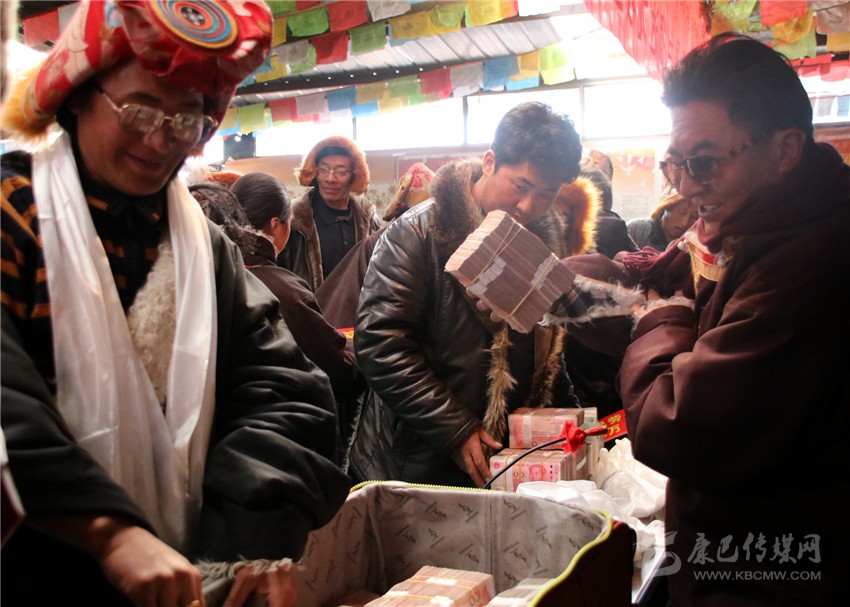 本網(wǎng)訊(刁海瀚 文/圖)日前,在海拔4500米的石渠縣色須鎮(zhèn)紅旗一村村民活動中心院內(nèi),色須鎮(zhèn)達(dá)攏合作社將253萬余元年底分紅分派給了263個牧民家庭,其中,建檔立卡貧困戶達(dá)70戶。